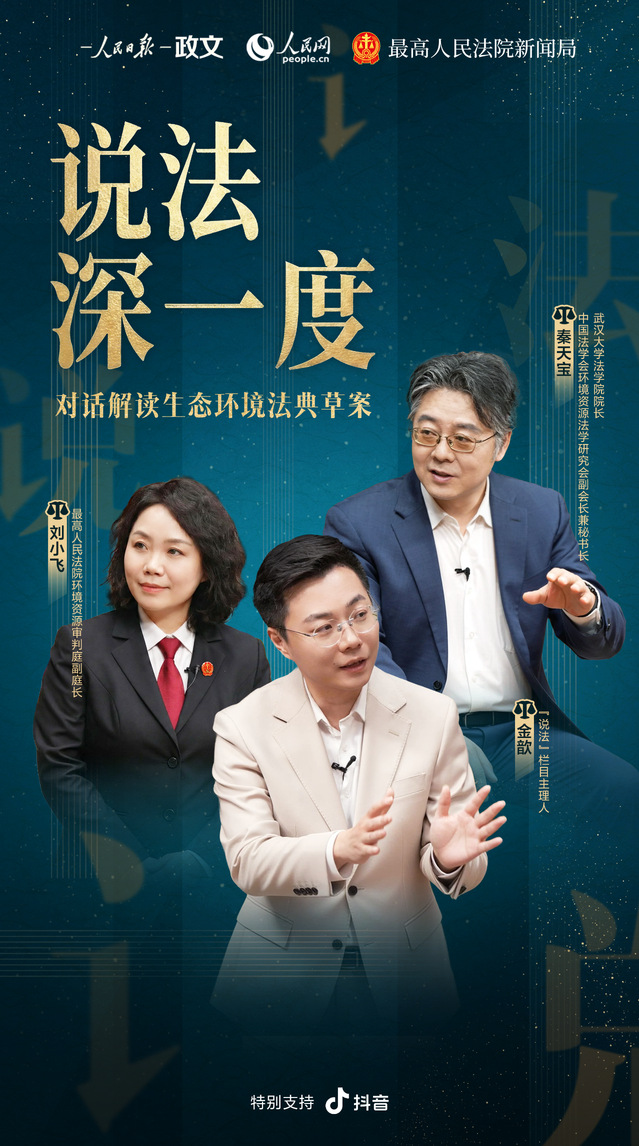 那么,从草案提请审议说起,生态环境法典和你我有什么切身关联?其内容回应了人民群众的哪些期待?在推动绿色低碳发展方面有何独特作用?在全国两会召开之际,最高人民法院新闻局联合人民日报政文部、人民网联合推出“说法”全新访谈栏目“说法深一度”,对话有关专家、资深法官,结合案例进行解读。