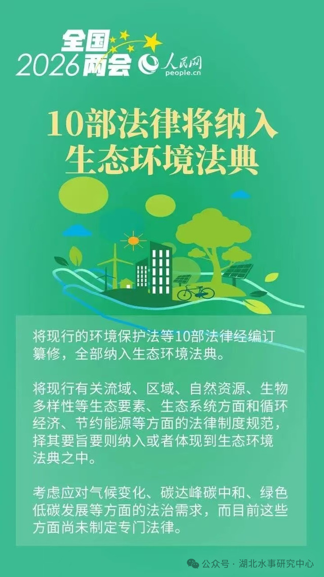 2026 年 3 月 12 日,十四届全国人大四次会议表决通过《中华人民共和国生态环境法典》(简称《生态环境法典》)。《生态环境法典》的诞生是中国生态环境保护法治建设史上的里程碑事件,对于中国的生态环境保护工作具有划时代的意义,标志着中国生态环境法治进入鼎盛时期。它是以习近平新时代中国特色社会主义思想特别是习近平生态文明思想、习近平法治思想为引领的法典。